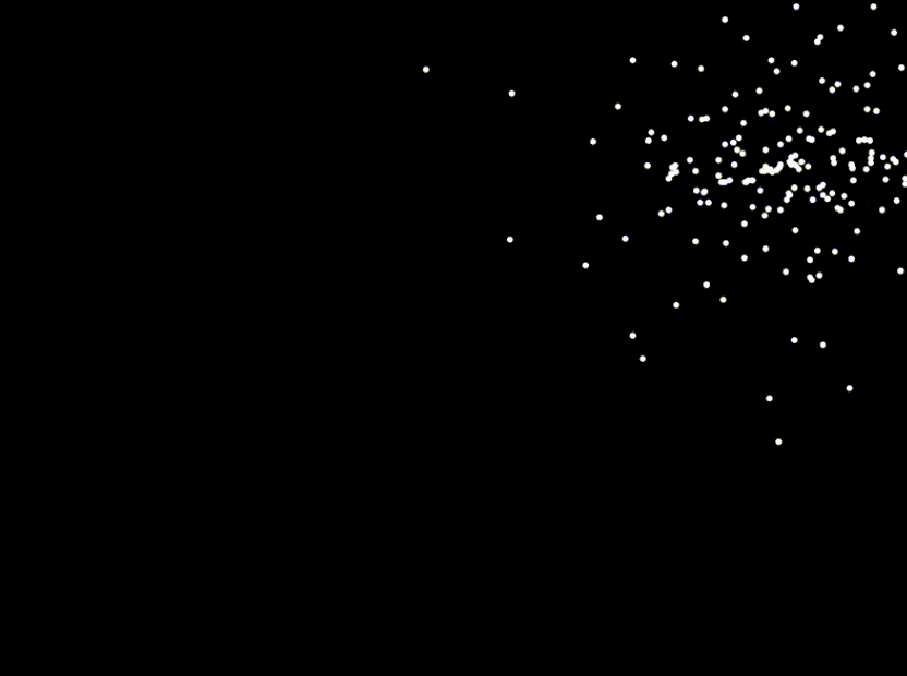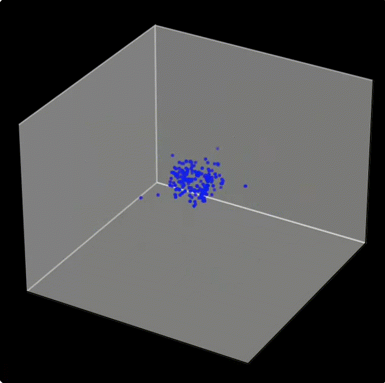 The Boid algorithm simulates bird murmuration or other insect-like swarm behavior by giving inividual Boid-class objects a sense of cohesion (a tendency to want to group together), alignment (Boids want to fly in the same direction as the average center of mass velocity), and finally a sense of dispersion (individual Boids take up physical space and do not want to clump together into a single point). The simulation below shows two separate runs of a Boid implementation in both 2 and 3 dimensions. The code repository is linked here for your inspection.